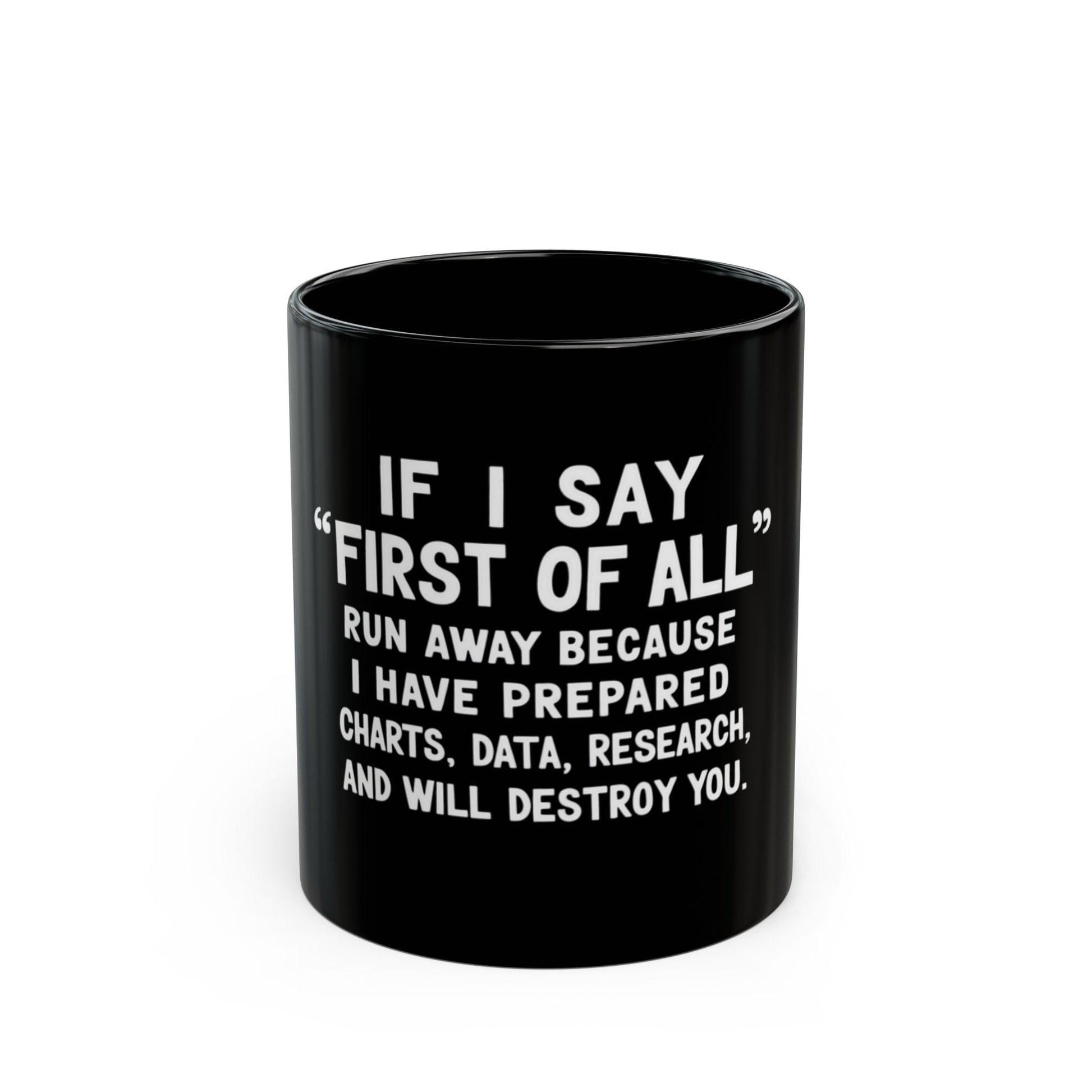You know that moment when someone says 'first of all' and you can feel the power shift in the room? This design is for the quick-witted, the analytical minds, and those who take pride in their research prowess. It's a nod to those who always come prepared with charts, data, and an unyielding determination to make their point heard. Whether you're the one with the well-organized debates or you know someone who is, this design captures that sharp and clever spirit. Wear it to your next gathering, meeting, or just around town to let everyone know you're ready to back up your arguments with facts. Embrace the confident clarity that comes with being prepared and make a statement with a touch of humor.