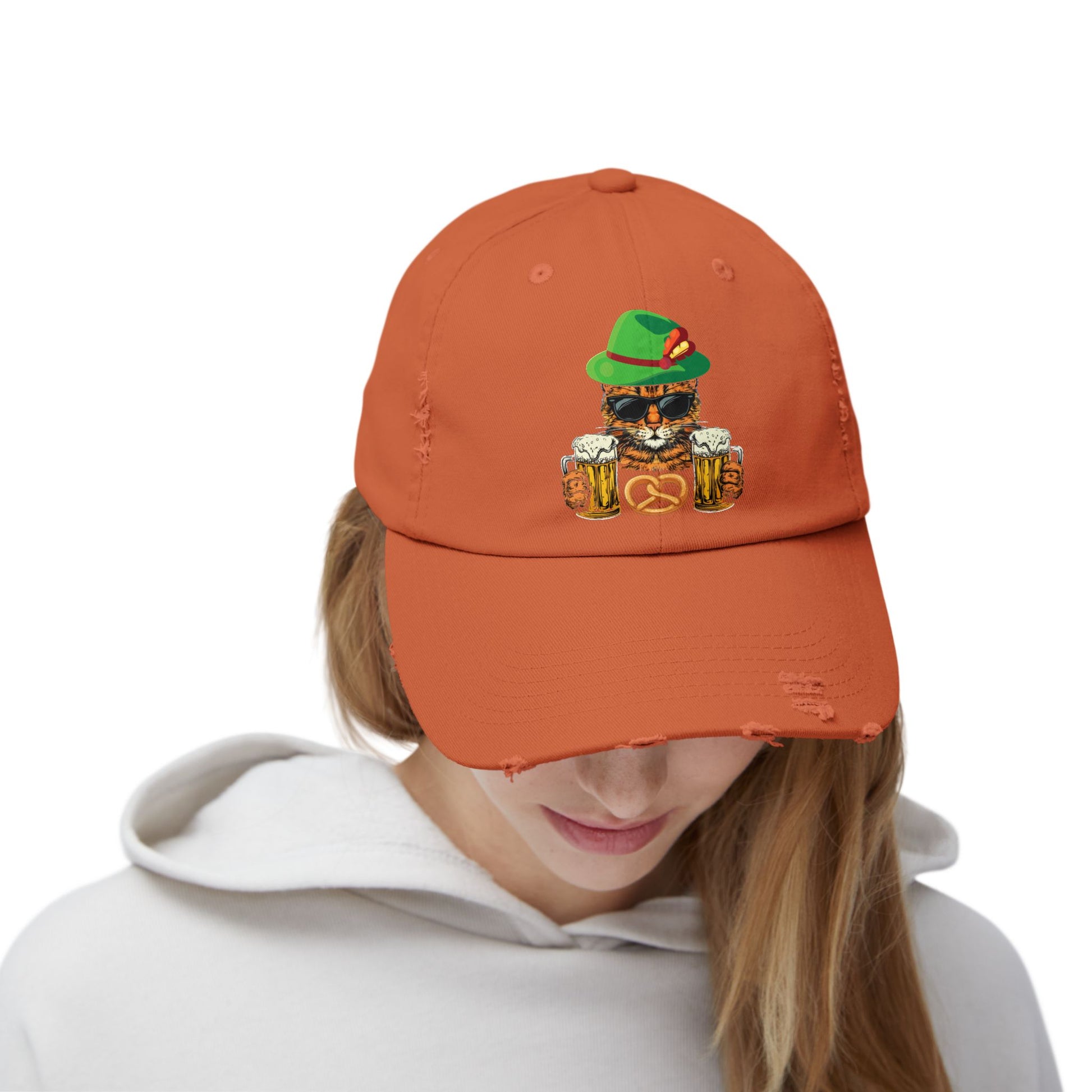 Embrace the festive spirit with this playful Purrost design, featuring a cool cat donning sunglasses, a traditional green hat, holding two frothy beer mugs, and a pretzel. Perfect for anyone who loves cats and the fun atmosphere of Oktoberfest, this design brings a smile to your face and adds a touch of humor to your festive celebrations. Whether you're a beer lover, a cat enthusiast, or just looking for something unique to show off your love for the Bavarian culture, this Purrost design captures the essence of fun and festivity.